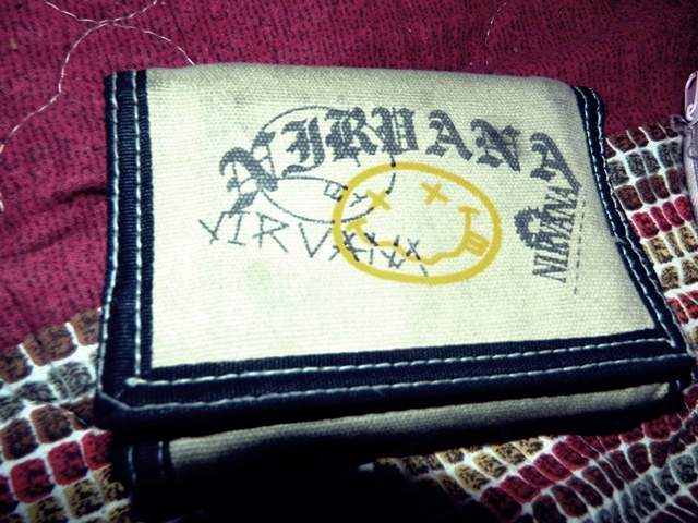 Nikuda ne idem bez svog Nirvana novčanika koji mi je tata kupio u Nemačkoj pre par godina u prodavnici "Sve za jedan evro" što vam dosta govori o tome koliko on košta. Vrlo je pristupačan i veoma je trendi, s obzirom da Nirvana više nije bend, već print za majice, novčanike i ostale fešn predmete. Moj novčanik je, naravno, uvek prazan.